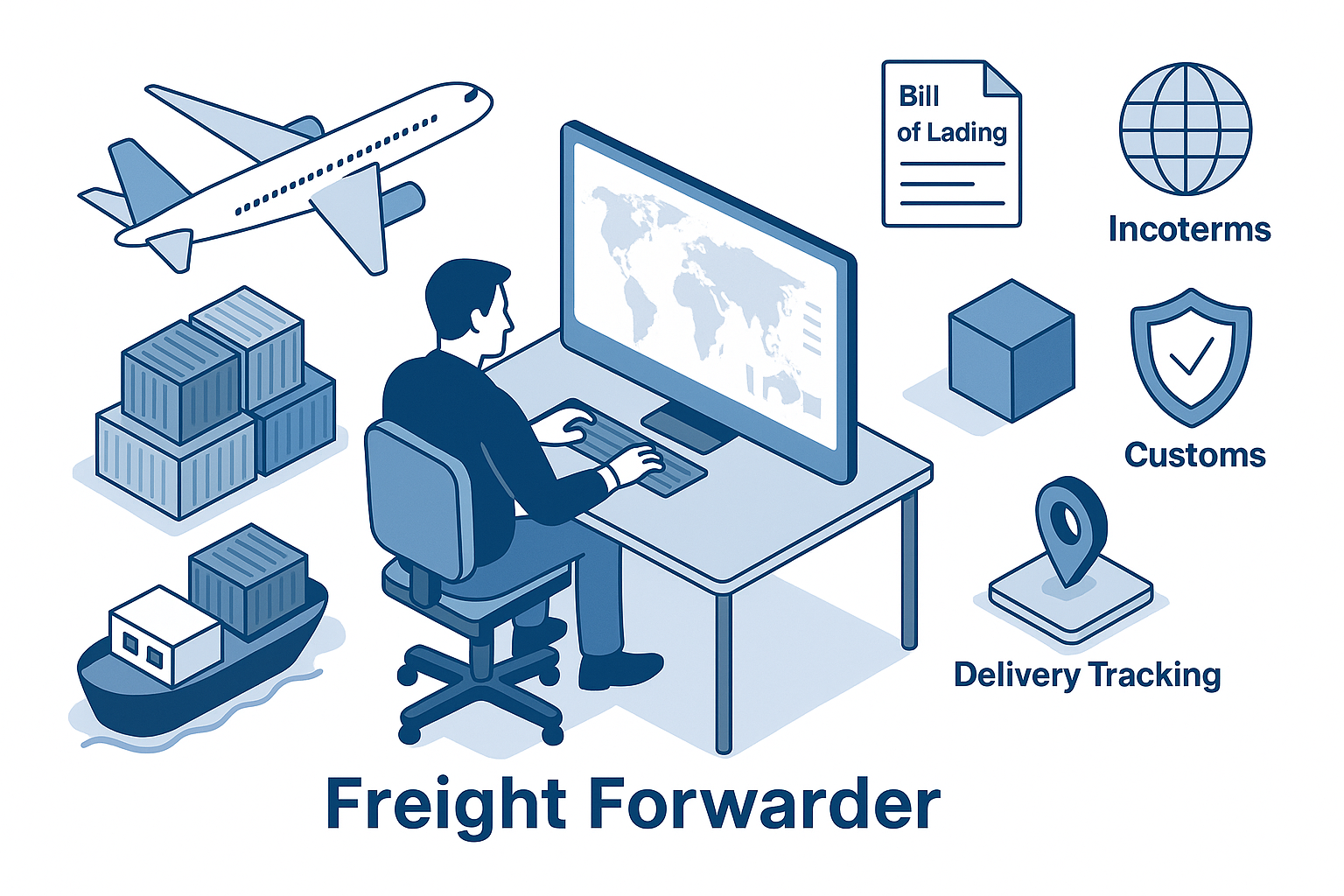• A freight forwarder is an agent or intermediary who arranges the entire shipment, including booking carriers, handling paperwork, and consolidating cargo.